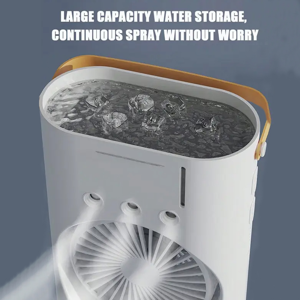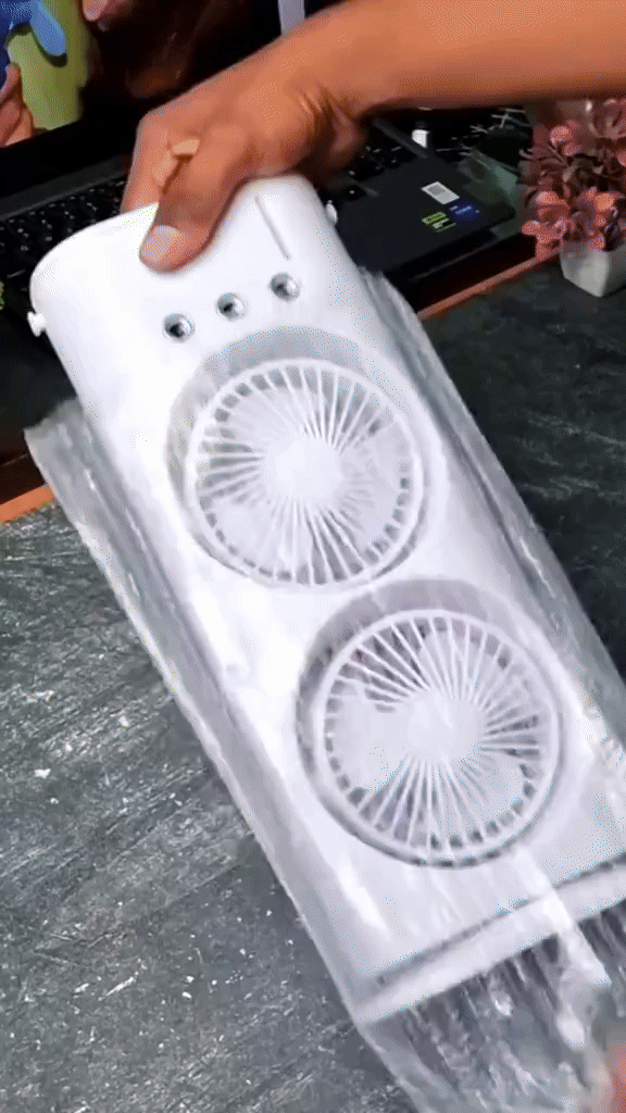 Tento hmlový ventilátor má systém s dvojitým čepeľou pre silný prietok vzduchu a jemný rozprašovač hmly, ktorý zvlhčuje vzduch – vašu pokožku udržiava hydratovanú a zároveň znižuje teplotu okolia.