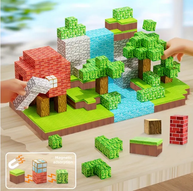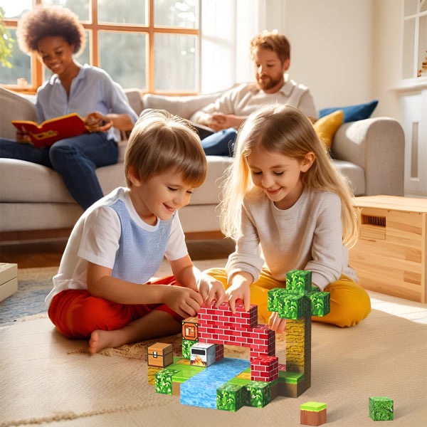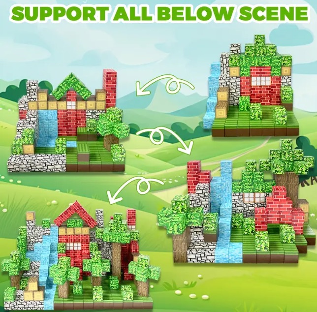 Každá kocka obsahuje silné magnety pre stabilné konštrukcie. Od jednoduchých veží až po zložité tvary môžu deti stavať slobodne a bez frustrácie.