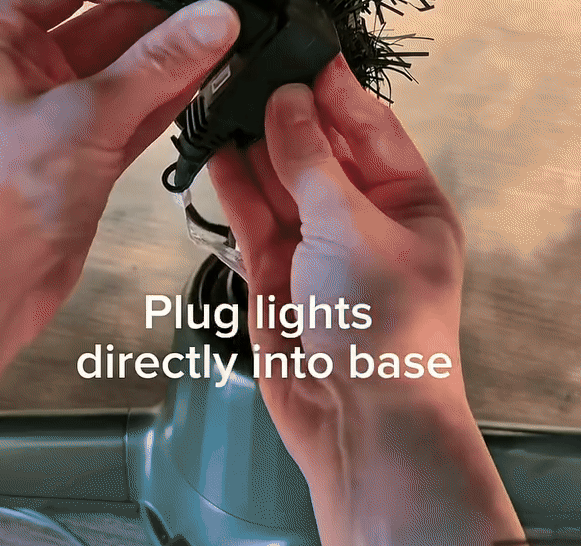 Tri integrované dvojkolíkové zásuvky umožňujú zapojiť vianočné svetlá priamo pri základni. Takto zabránite zamotaniu alebo krúteniu káblov počas otáčania stojana, čo dodá stromčeku upravený a profesionálny vzhľad.