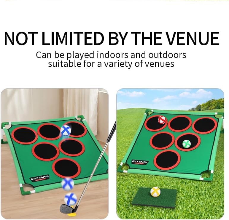 Sadu môžete používať zvislo, položiť ju naplocho alebo si vytvoriť vlastné usporiadanie pre rozmanitú hru ✨ Kombinuje golfové chipping cvičenia s terčmi v štýle cornhole, ponúka pútavú zábavu pre deti aj dospelých a podporuje rodinnú súdržnosť aj priateľské súperenie.