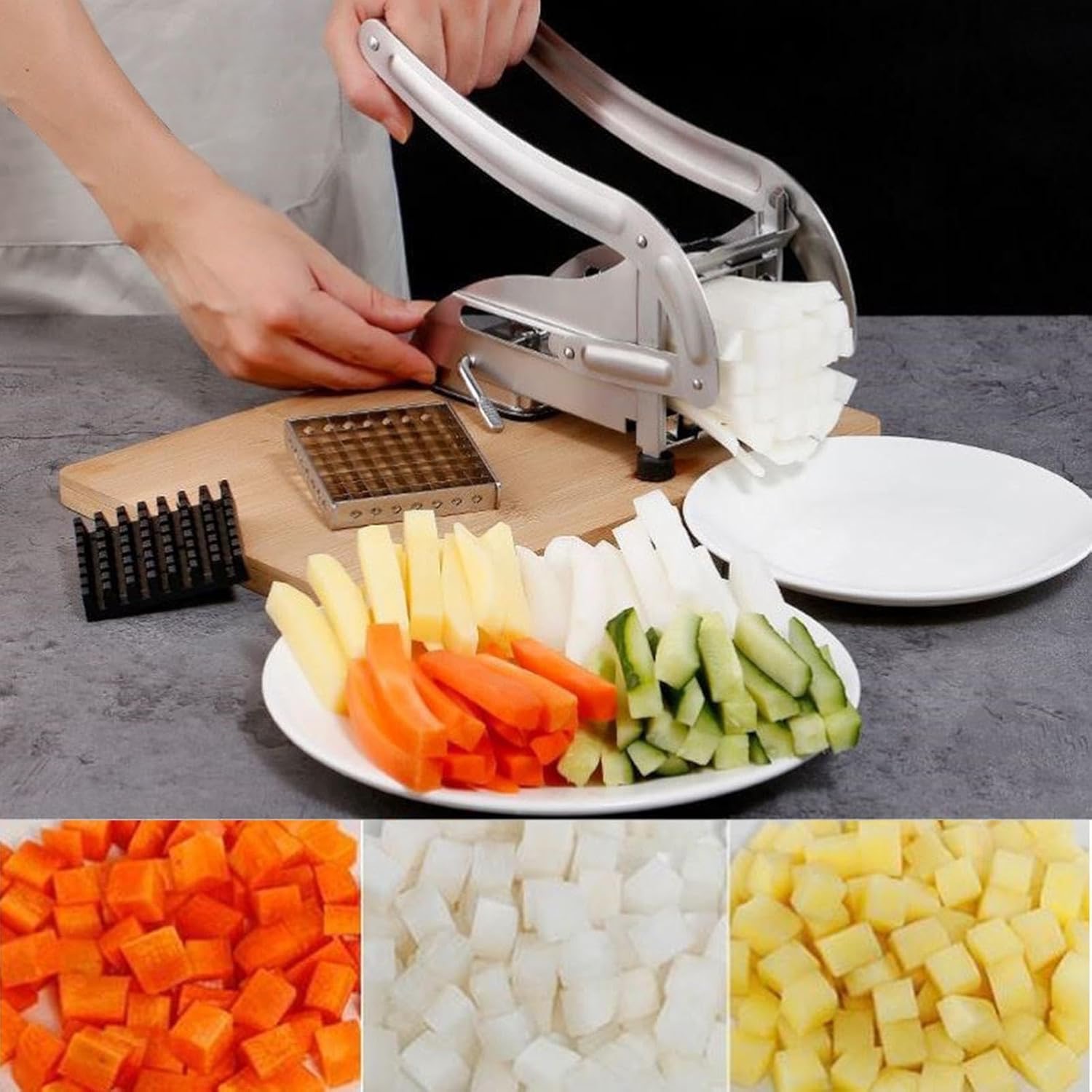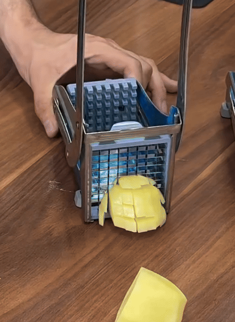 Krájač je vyrobený z potravinárskej nehrdzavejúcej ocele, je odolný voči hrdzi, opotrebovaniu a je navrhnutý na dlhú životnosť. Jednoducho krája zemiaky na rovnomerné plátky, vďaka čomu ingrediencie pripravíte rýchlejšie a presnejšie.