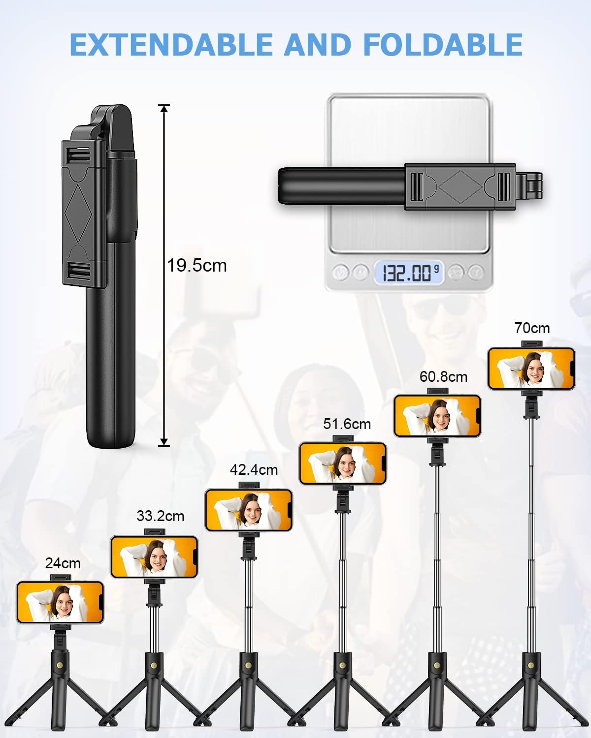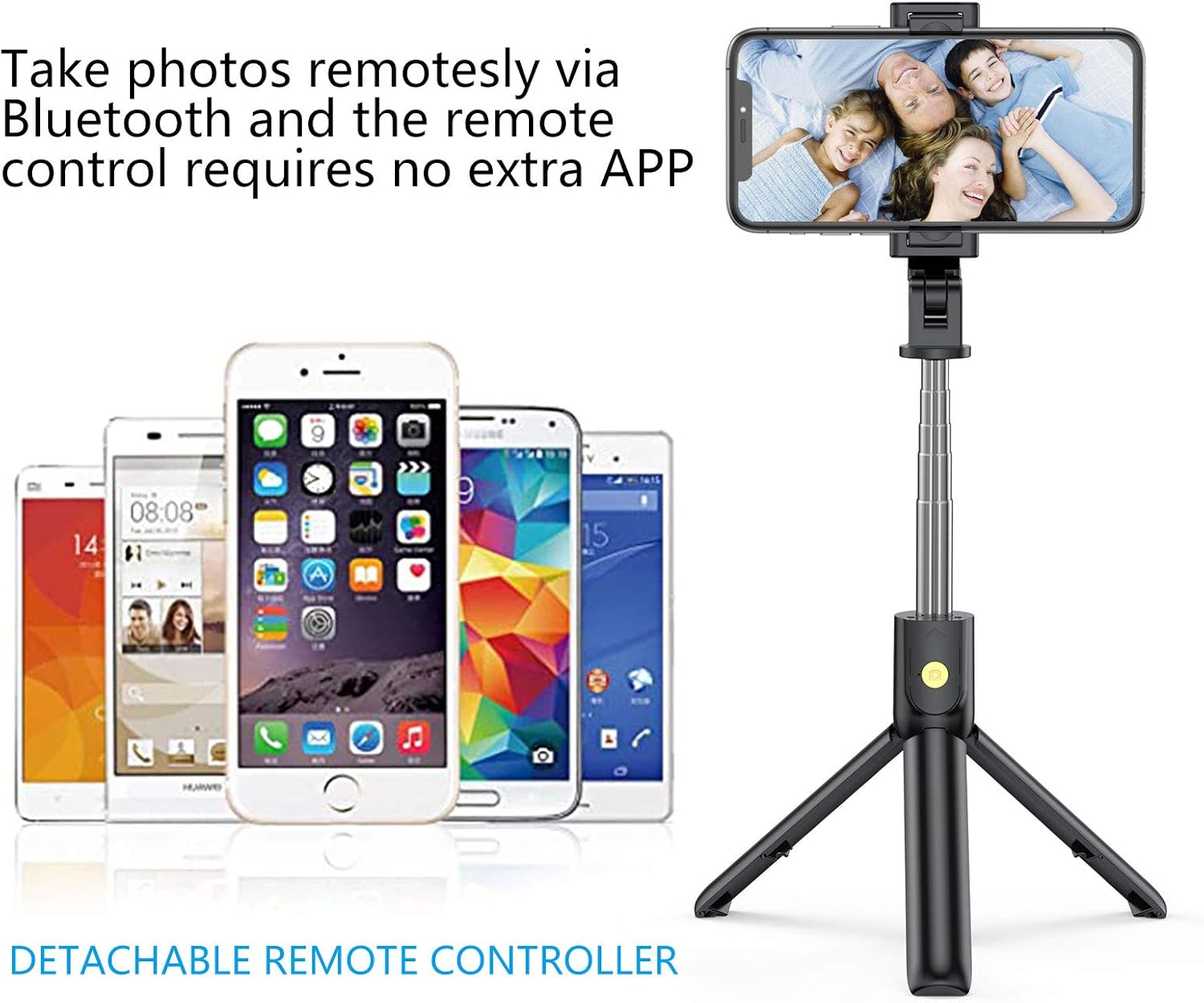 Selfie tyč HOOS je kompatibilná s väčšinou smartfónov iOS a Android, vrátane modelov iPhone (od SE po 15 Pro Max), Samsung Galaxy (S, A a Note série), Xiaomi, Huawei, Google Pixel, OnePlus a ďalšími zariadeniami s Bluetooth pripojením a šírkou do 9,5 cm. 📱✨