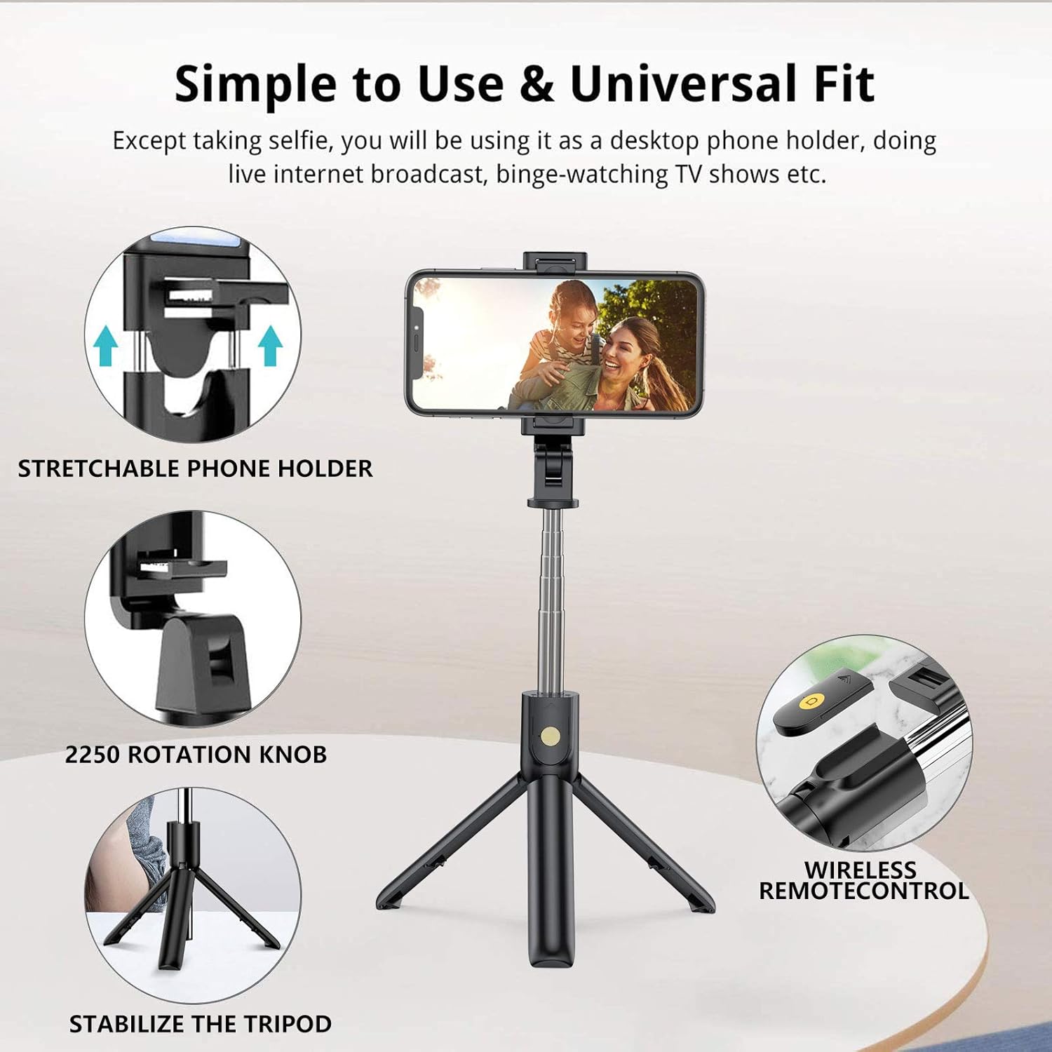 Vďaka 270° otočnému držiaku si môžeš nastaviť svoj telefón presne tak, ako ti vyhovuje – vertikálne alebo horizontálne. Stabilný stojan zabezpečí, že tvoje fotky a videá sú vždy jasné a bez chvenia. 📱🎬