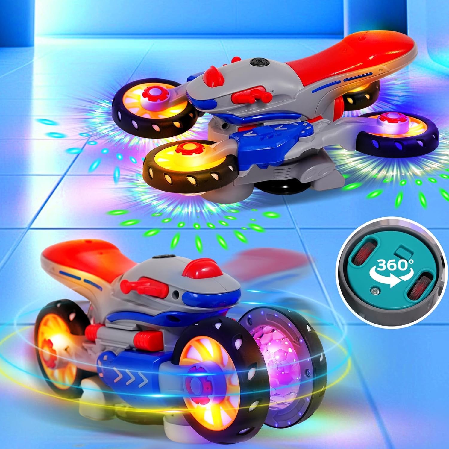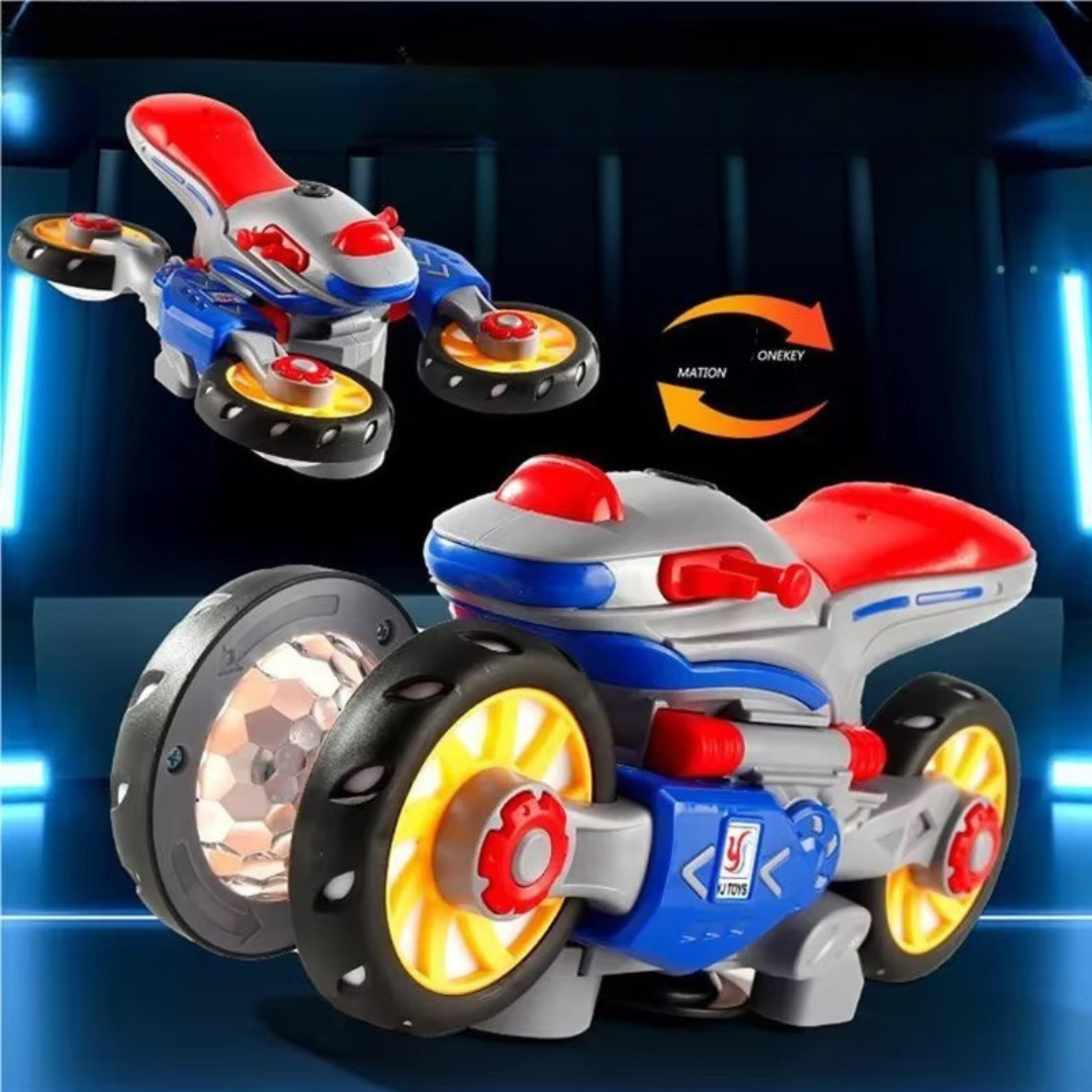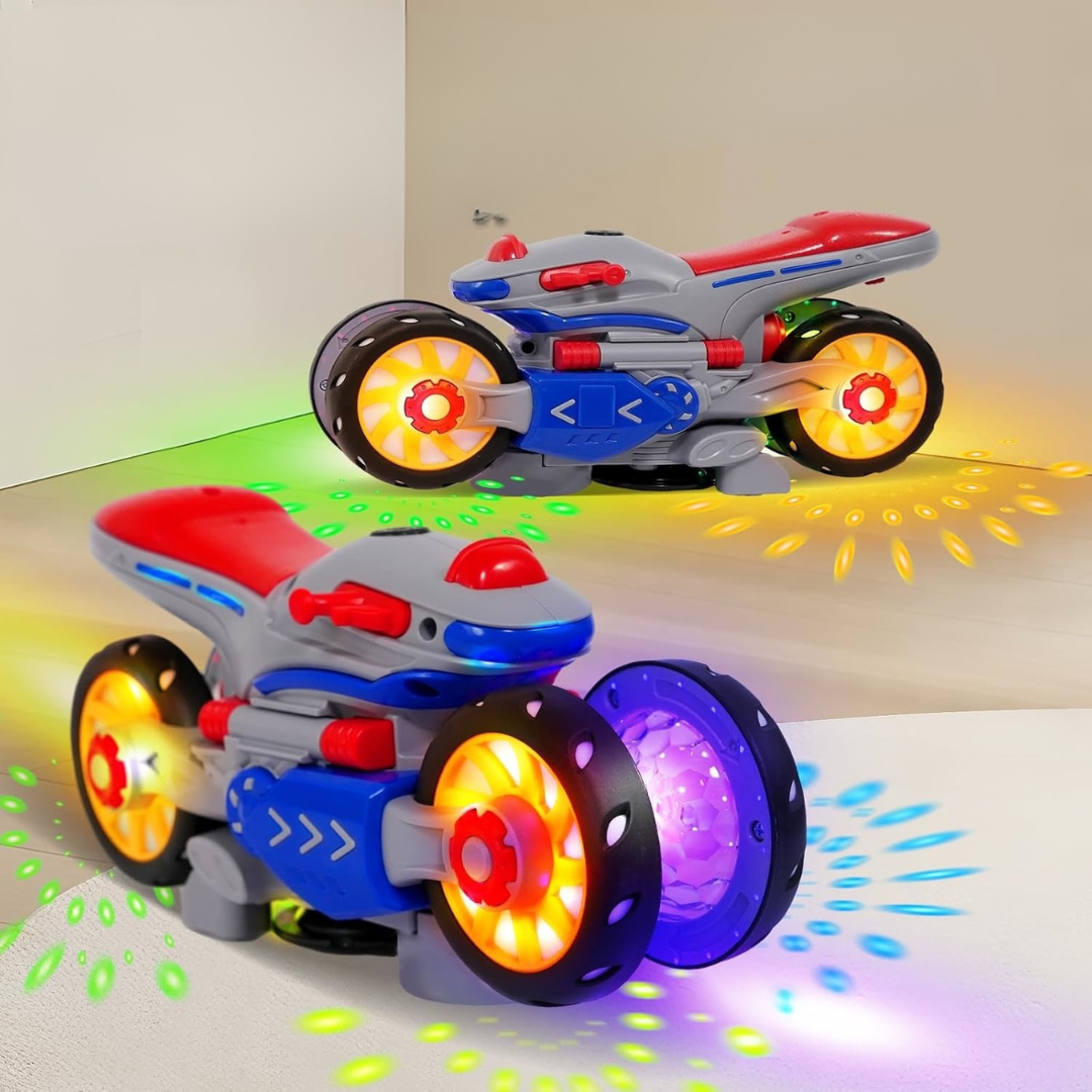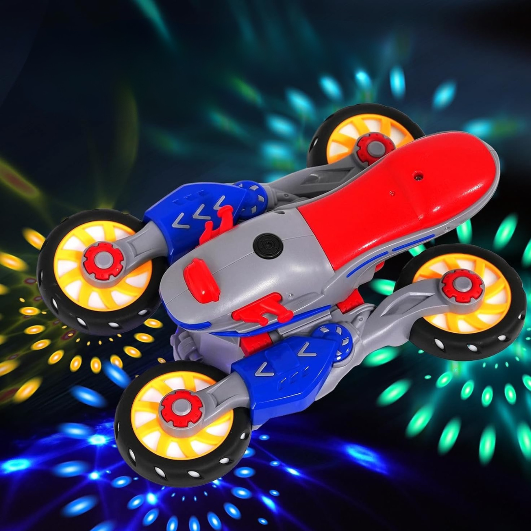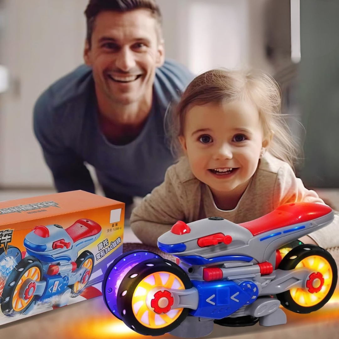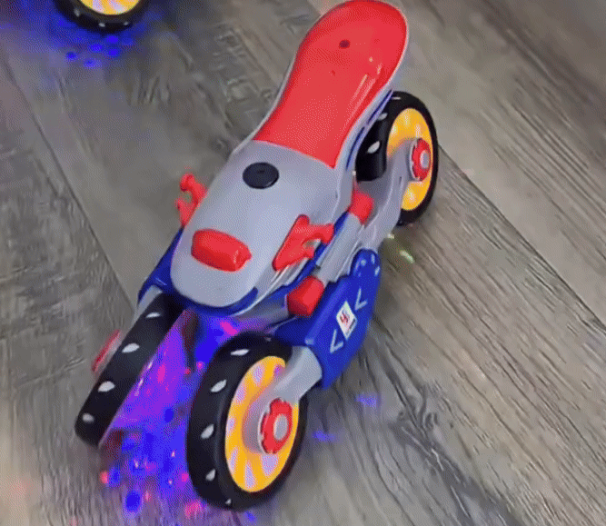 Motorka sa otáča o 360 stupňov a okamžite reaguje na prekážky, čím vytvára hravý a dynamický zážitok. Jasné LED svetlá a živá hudba premieňajú každú jazdu na farebnú a pútavú show, ktorá upúta pozornosť a predstavivosť detí.