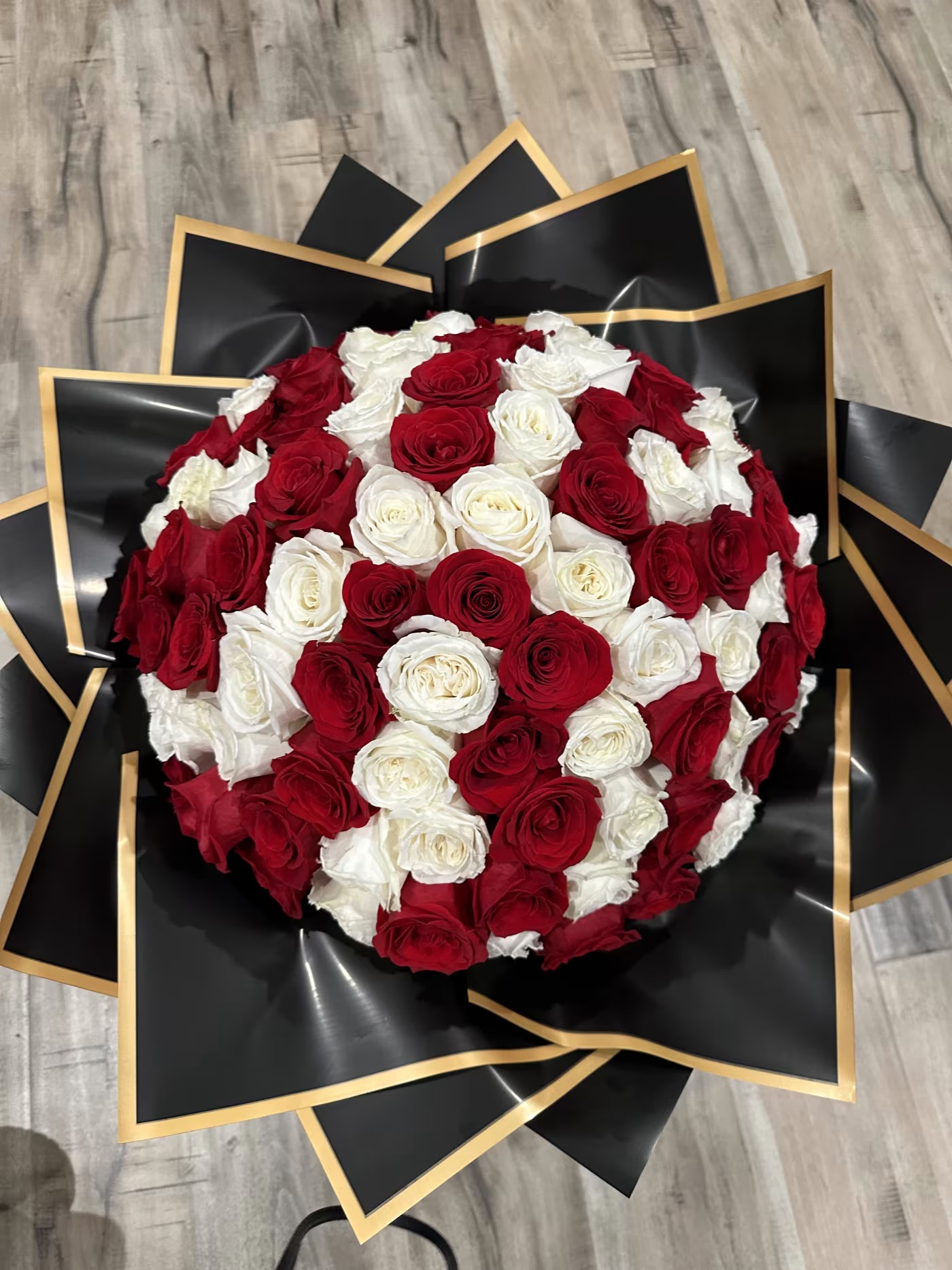 Kombinácia červených a bielych ruží v tejto kytici symbolizuje lásku, vášeň a čistotu. Je ideálnym darčekom na vyjadrenie hlbokých citov a vytváranie nezabudnuteľných momentov pre vašich blízkych, či už ako romantické gesto alebo úprimné prekvapenie od srdca.