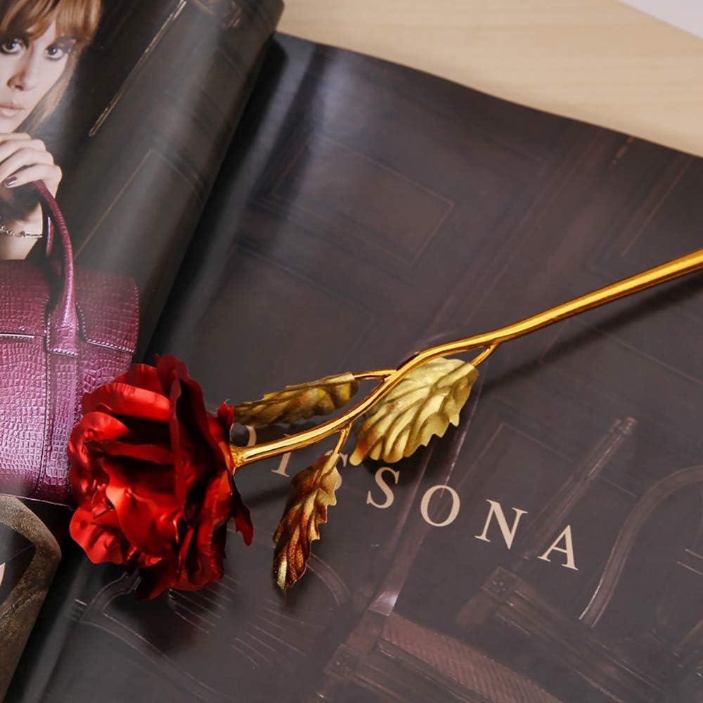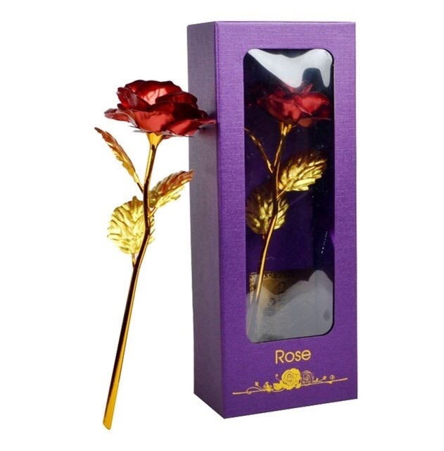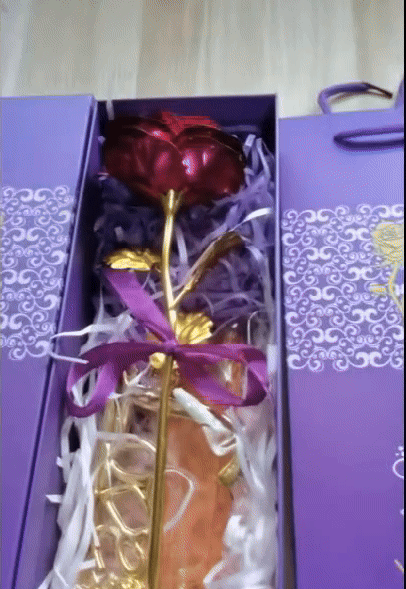 Ruža má nádherne vytvorený červený kvet v kombinácii s pozlátenou stonkou, čo vytvára výrazný kontrast symbolizujúci lásku, krásu a eleganciu. Na rozdiel od čerstvých kvetov si táto konzervovaná ruža zachováva svoju dokonalosť v priebehu času a predstavuje večnú lásku, priateľstvo a rodinnú náklonnosť.